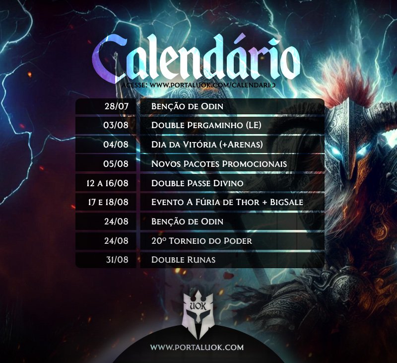 Saudações Kersefianos! O calendário do mês de [Agosto] já está disponível! DOUBLE PERGAMINHO (LE): O evento iniciará às 00:01 e […]