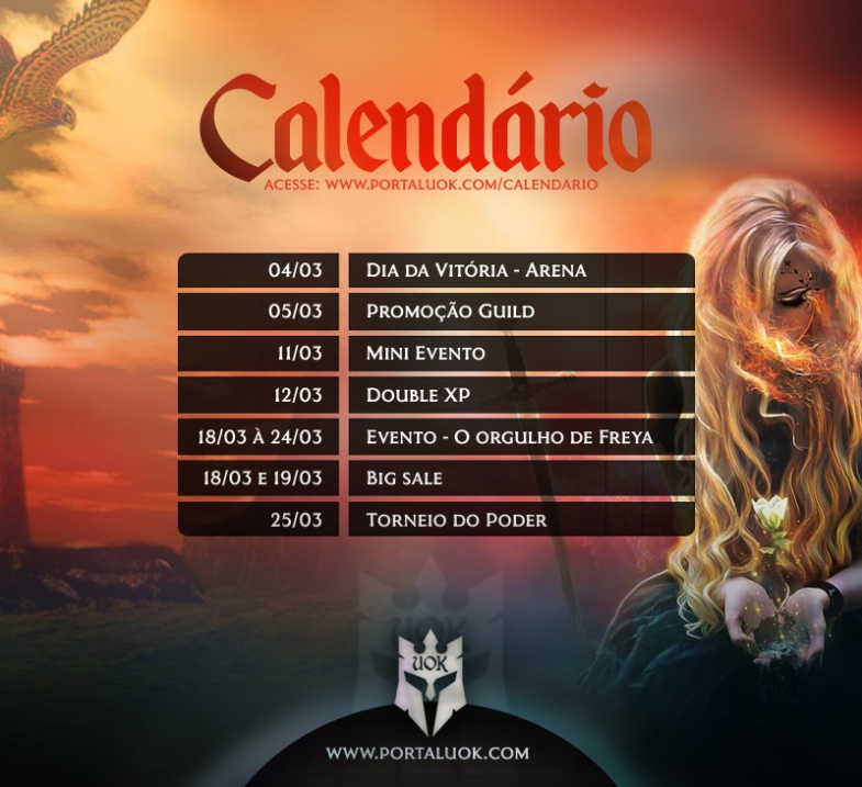 Saudações Kersefianos! O calendário do mês de Março já está disponível! 06 Dia da Vitória – Arena Real: Para