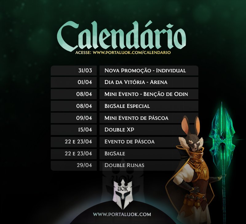 Saudações Kersefianos! O calendário do mês de [Abril] já está disponível! Dia da Vitória – Arena Real: Para iniciar o