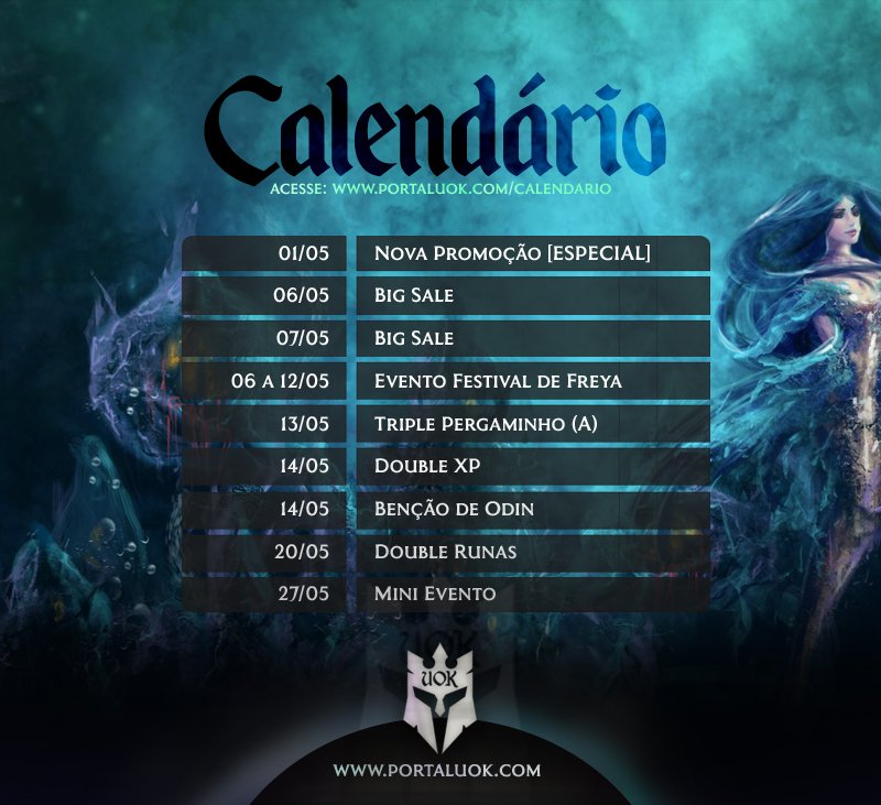 Saudações Kersefianos! O calendário do mês de [Maio] já está disponível! Triple Pergaminho (A): Serão 3.900 entradas e o evento