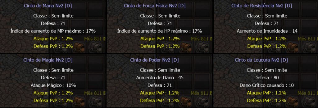 Para refinar o Cinto ou Colar Nv2 de +12 até +13, é necessário utilizar os seguintes itens abaixo: