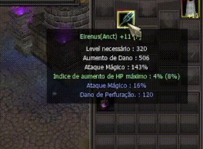 Eirenus +11 36% Magia/21 Skill + Extração Mística (Magia) = Eirenus +11 36% Magia/4% Aumento de MP.