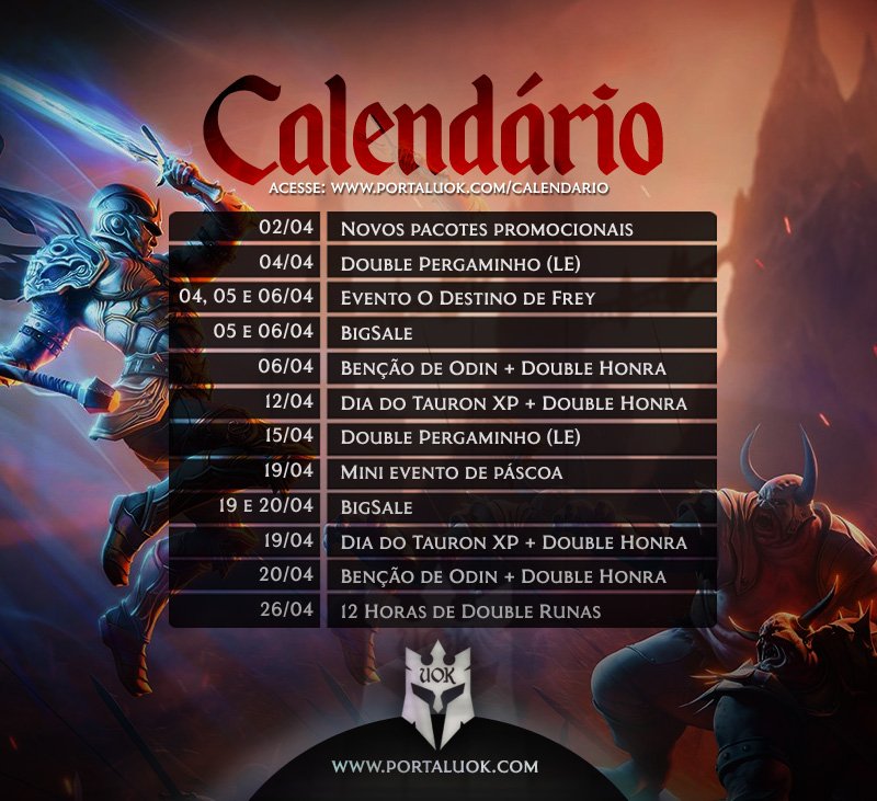 Saudações Kersefianos! O calendário do mês de [Abril] já está disponível! NOVOS PACOTES PROMOCIONAIS: No dia 2 de Abril, novas […]