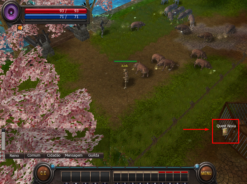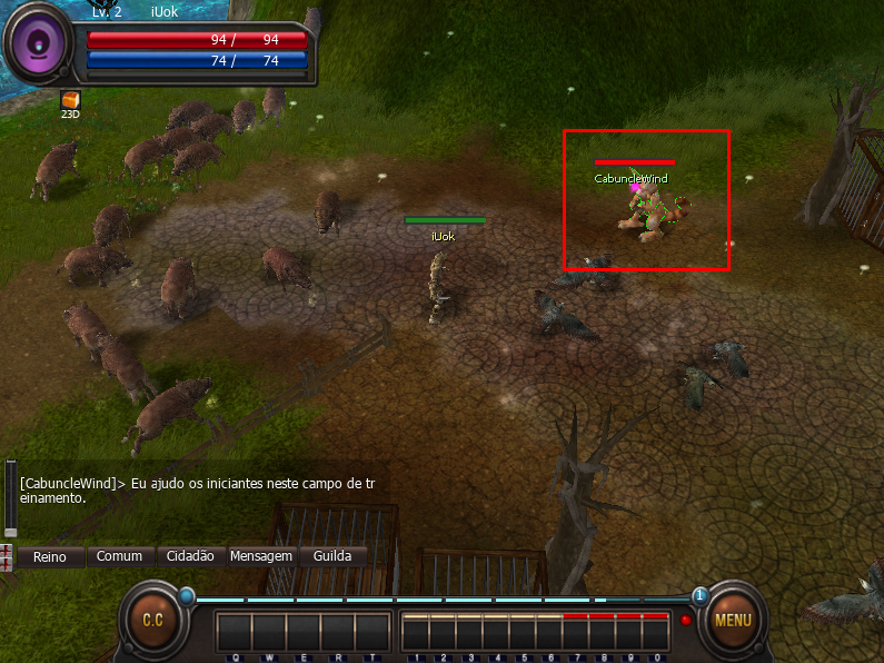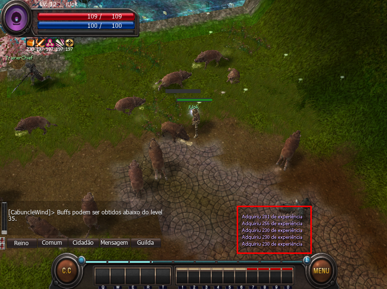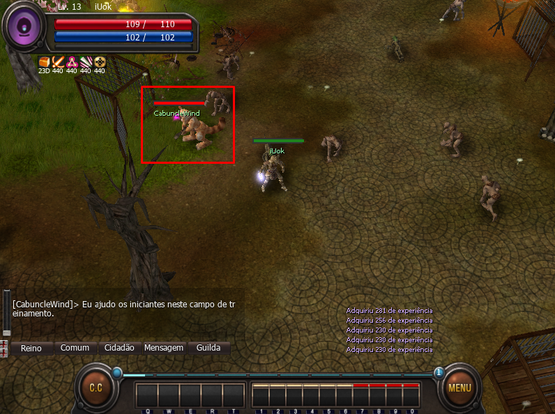 Agora clique nos monstros próximos a você e comece a matá-los para receber experiência. É recomendável o uso do C.C (Controle de Combate)