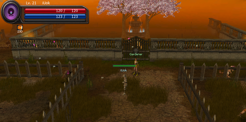A cada 1/4 de level alcançado ou level completo, você será notificado e sua barra de HP/MP será regenerada. Quando você achar que tem level o suficiente para avançar pelo Campo de Treino, você precisará matar o monstro que carrega a chave (Gremlin Artif) para desbloquear o primeiro portão. Para avançar basta recuperar a chave, conversar com o guarda e clicar no portão com a chave em mãos.