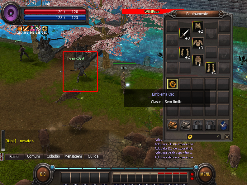 Ao derrotar o Boss do Campo de Treino, você receberá um Emblema Orc. É possível trocar o emblema com o chefe do campo de treino (TrainerChief)