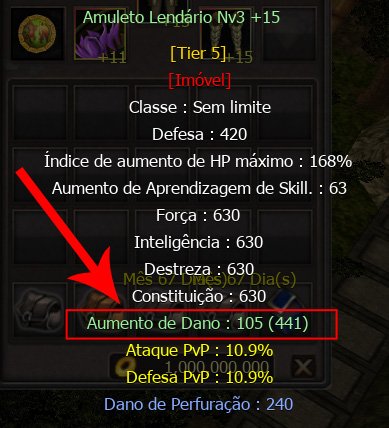 Se você possui um Amuleto Lendário Nível 3 de MP + Aprendizagem de Skill com adicional secundário Tier 3 de Magia (26%) e utilizar um Transferidor de Dano, o amuleto continuará exatamente o mesmo, com MP e Skill, mas o adicional secundário será alterado para Dano 86, como ilustrado na imagem.